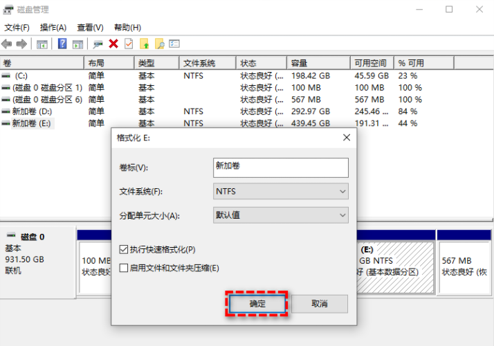 2.弹出格式化窗口,设置好卷标、文件系统等,勾选“执行快速格式化”,再点击“确定”即可。