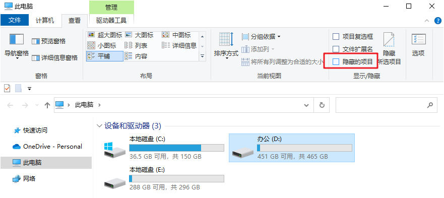 方法一:取消隐藏