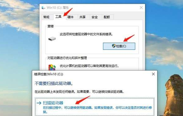 双击“此电脑”,选择“属性”,进入后找到“工具”,点击检查。这样做的目的是为了检查电脑驱动器出现了什么样的异常,在弹出的窗口中选择“扫描驱动器”即可。