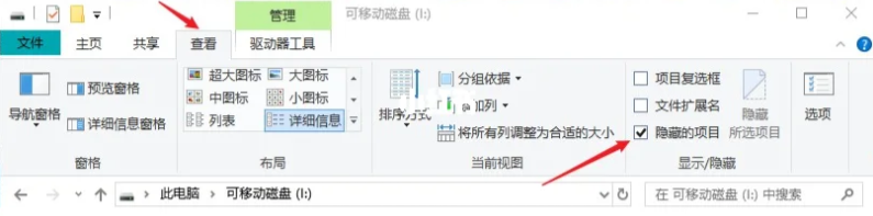 内存卡数据有时候可能不是丢失了,而是被隐藏起来了,一般是由于误操作或病毒等原因导致的,可以试试用显示隐藏文件的方法。先打开sd卡,找到“查看”,勾选“隐藏的项目”,就可以将隐藏的文件显示出来。