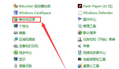 1.找到电脑里面的“控制面板”,找到“备份和还原”点进去。