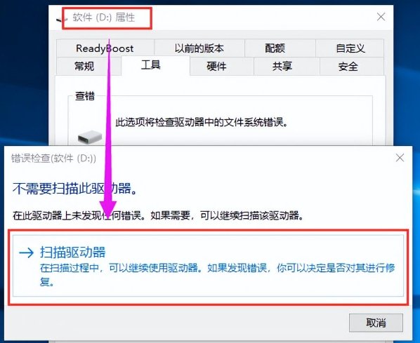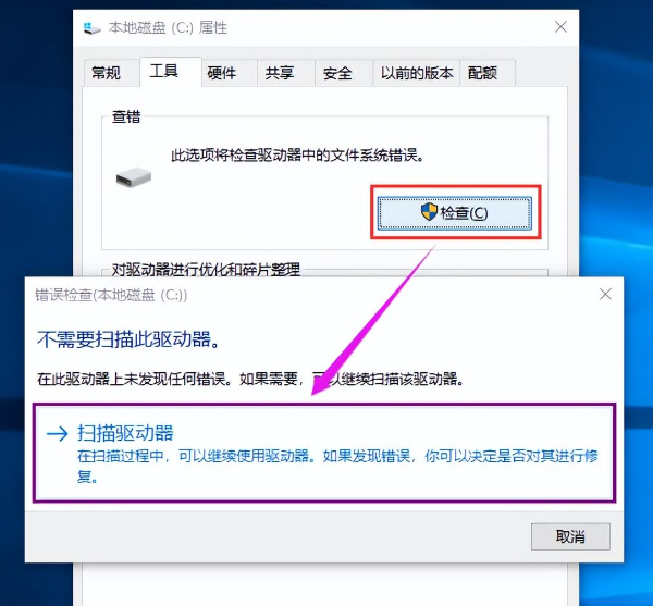 3.点击“检查”,并点击“扫描驱动器”。