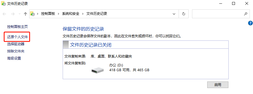 方法一:使用文件历史/备份