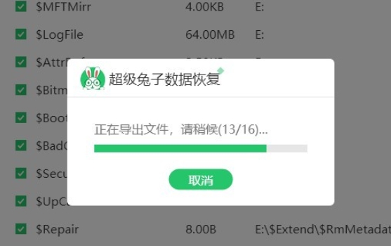 3. 超级兔子正在扫描文件,请耐心点。扫描完成后,选中要恢复的文件,然后单击“立即恢复”按钮,完成数据恢复过程。