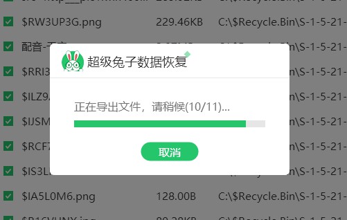 6.超级兔子开始恢复和导出数据,全程无需任何手动操作。