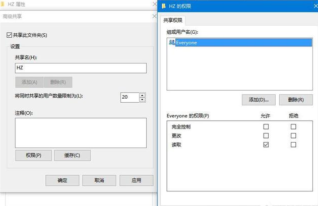 4.在权限设置中可以勾选是否允许用户更改共享的文件,默认的权限是只允许读取,如果勾选【更改】,从局域网上打开共享文件的用户就可以更改共享文件的内容。