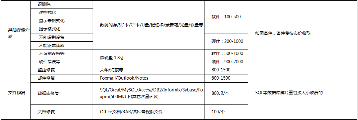 内存卡数据恢复收费标准