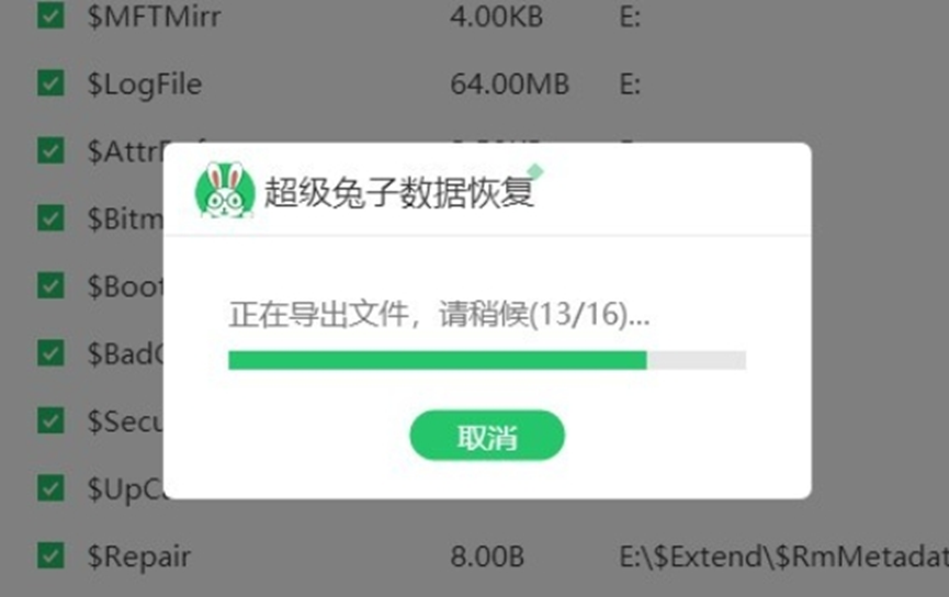 5.数据导出正在进行中,超级兔子会自动完成所有操作。在此期间,您无需干预,只需静待数据导出完成即可。