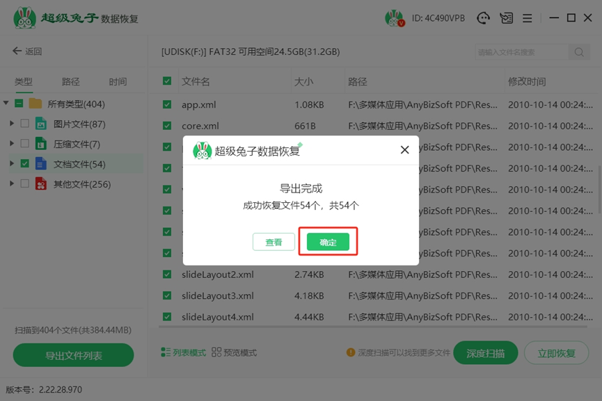 4.扫描完成后,您可以进入“预览模式”查看文件,选择您需要恢复的文件,点击“立即恢复”按钮,开始恢复数据。