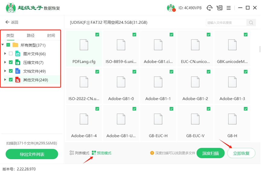 4.等扫描结束了,先通过“预览模式”检查文件,确定是自己需要的,之后再点击“立即恢复”开始恢复。