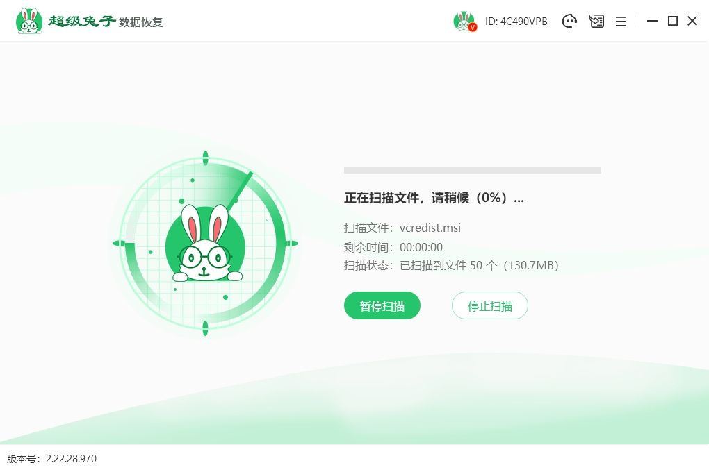 2.选择好目标U盘后,点一下“开始扫描”,超级兔子会立即运行,帮你查找丢失的文件并准备恢复。