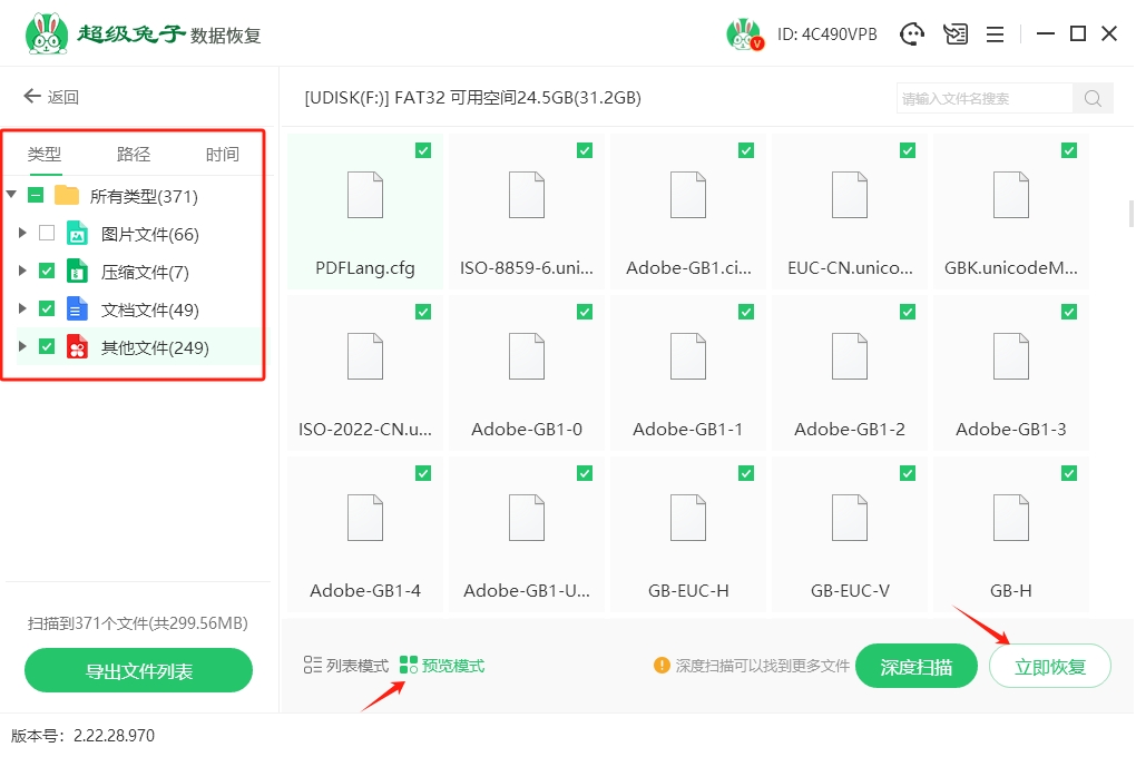 4.一旦扫描结束,您可以通过“预览模式”检查文件是否正确。如果一切没问题,点击“立即恢复”按钮,开始恢复丢失的数据。