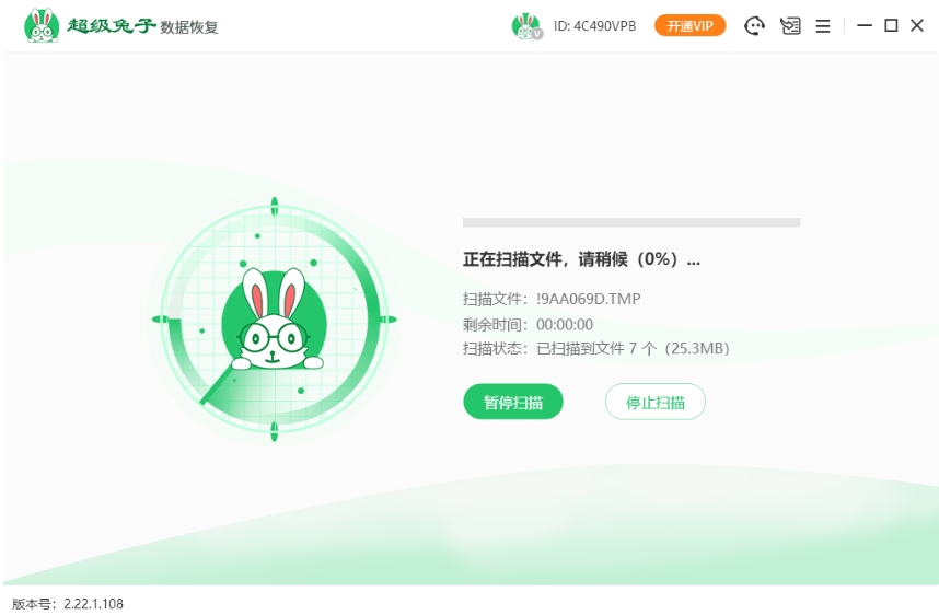 2.选定要恢复的U盘分区后,点击“开始扫描”,超级兔子就会自动进行扫描,查找丢失的文件内容。