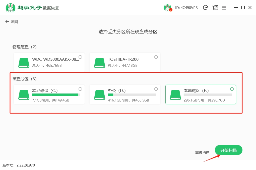 2.确认分区选择无误后,点击“开始扫描”,超级兔子会立刻对分区内容进行查找。