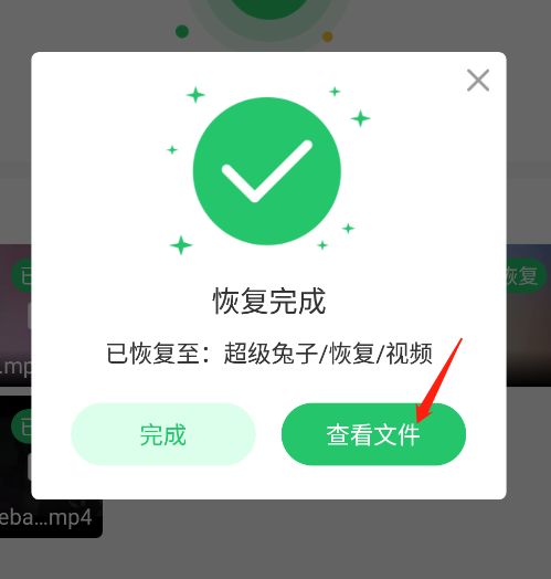 4.恢复成功。您可以点击【查看文件】来找到已经成功恢复的视频文件。