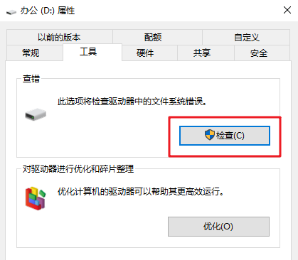 2.在工具选项中检查下错误,通过错误检查扫描结果评估,然后修复文件系统并重新启动计算机。