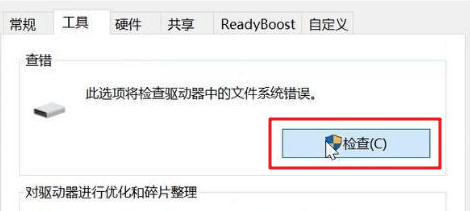 2.把上方的选项卡切换到“工具”,然后点击“检查”,电脑会自动检查和修复磁盘。