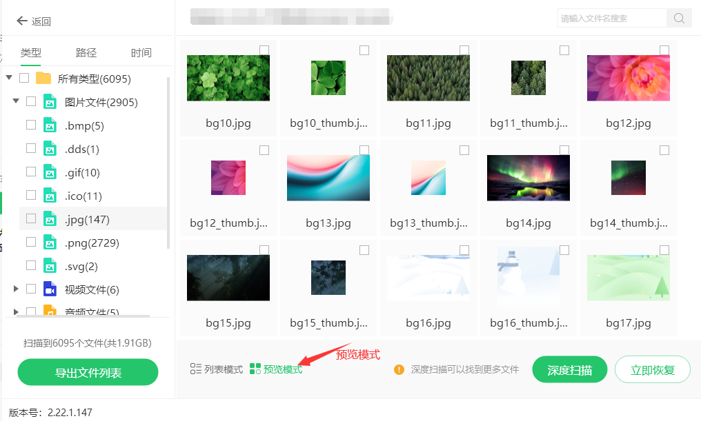 1.扫描完后选择预览模式可以查看文件情况,勾选需要的文件进行恢复。