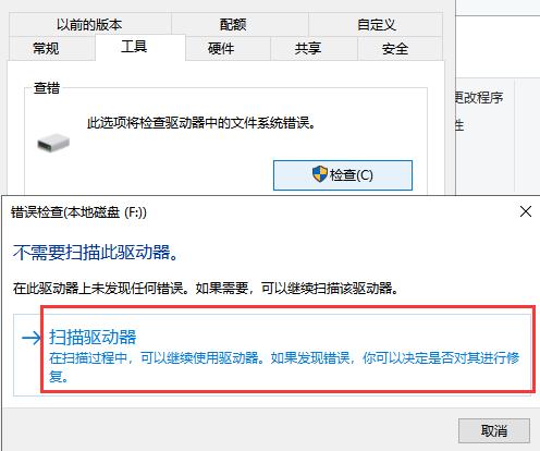 选中u盘,右键点击“属性”,然后在属性窗口选择“工具”,然后点击“检查”,然后电脑就会对u盘进行检查和修复了。
