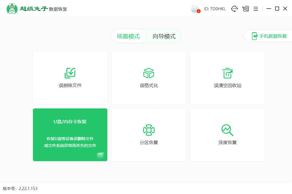 1.打开超级兔子数据恢复,在“场景模式”里选择【U盘/内存卡恢复】。
